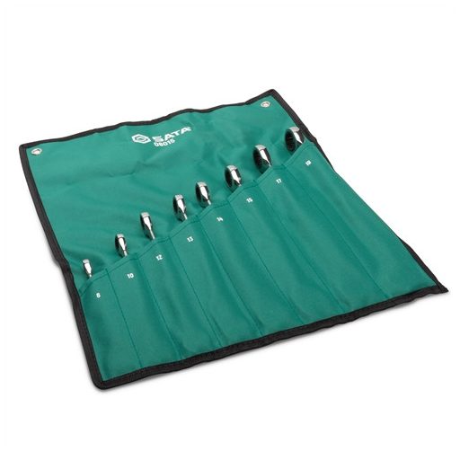 SATA extra hosszú csillag-villáskulcs készlet 8-19mm 7 részes (csavart nyéllel) (felgöngyölíthető táskában)