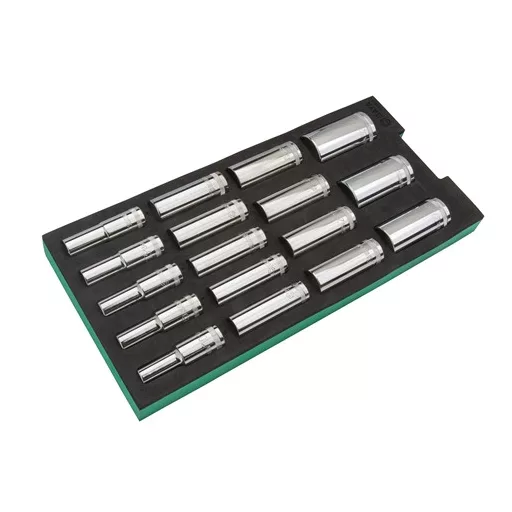 SATA hosszított dugókulcs készlet 1/2 17 részes szivacsmodulban
