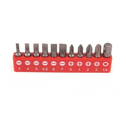 11 db-os 1/4"-os bit készlet gumi tokban,