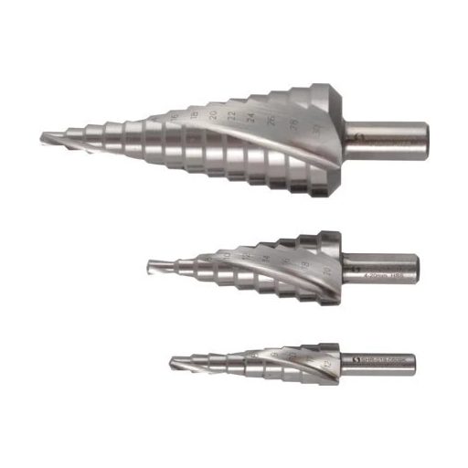 Lemezfúró, lépcsős - készletben 3 db-os HSS 4-30 mm