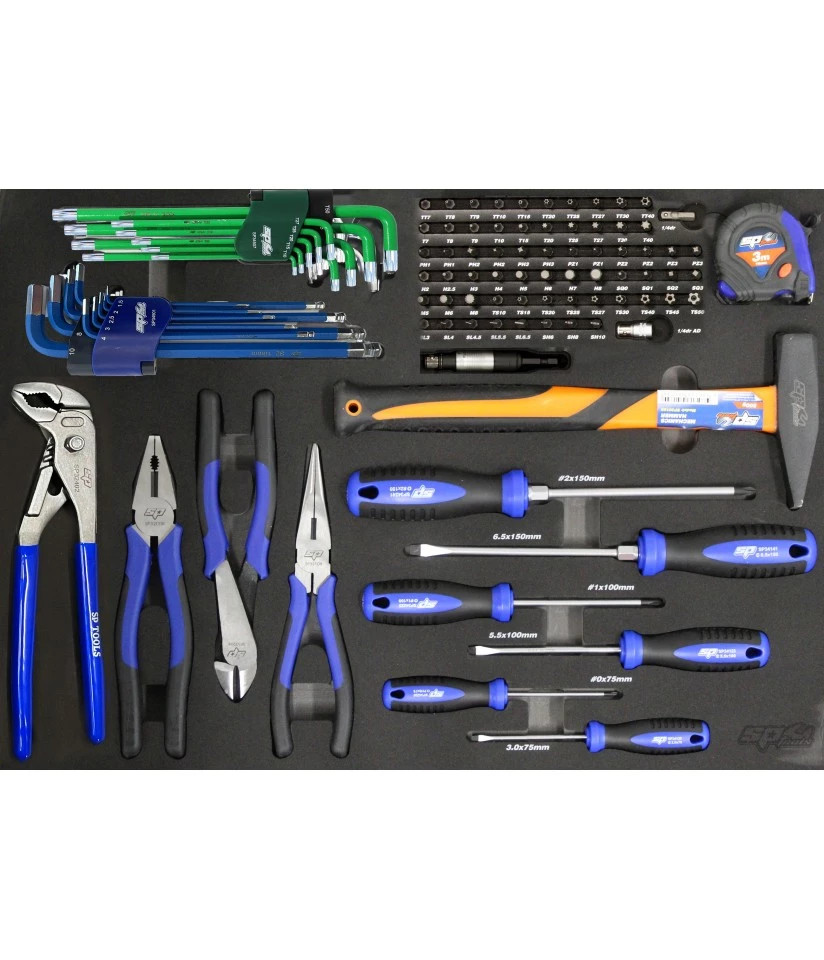 SP00522 | Tálcás SP Tools "M" Kiegészítő Fogó-Kalapács-Csavarhúzó készlet 97db-os