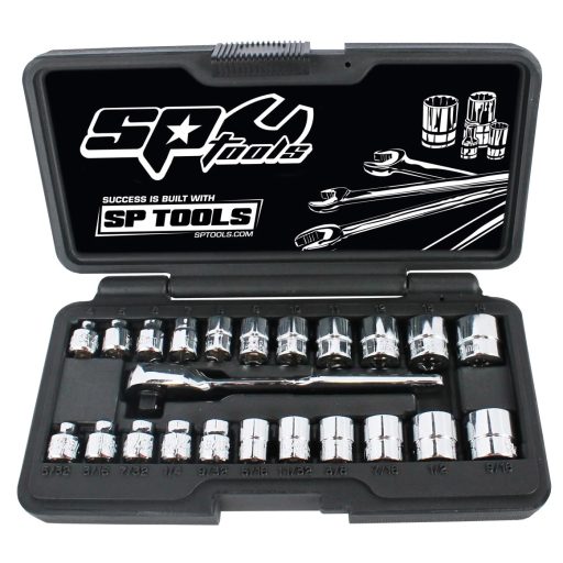 SP20121 | Dugókulcs készlet 1/4" 6 lap metrikus+Colos ALACSONY 23 db SP Tools