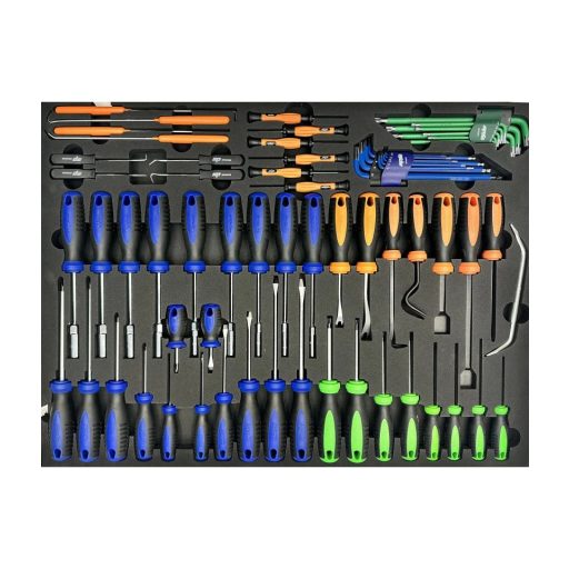 SPUSS033 | Tálcás SP Tools "XL" Csavarhúzó + Patentkiszedő + Kampó készlet 69 db-os