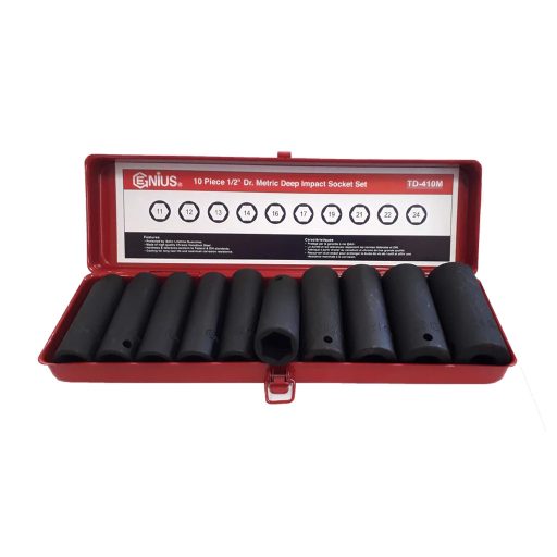 TD-410M | Légkulcsfej készlet 1/2" 10 db 11-24 mm metrikus hosszú Genius