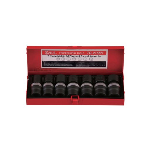 TG-215M1 | Légkulcsfej készlet 1/2"  7 db 13-21 mm metrikus rövid - Csuklós- Genius