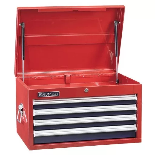 4 fiókos piros-kék színű professzionális, szerszámos szekrény (felső rész).