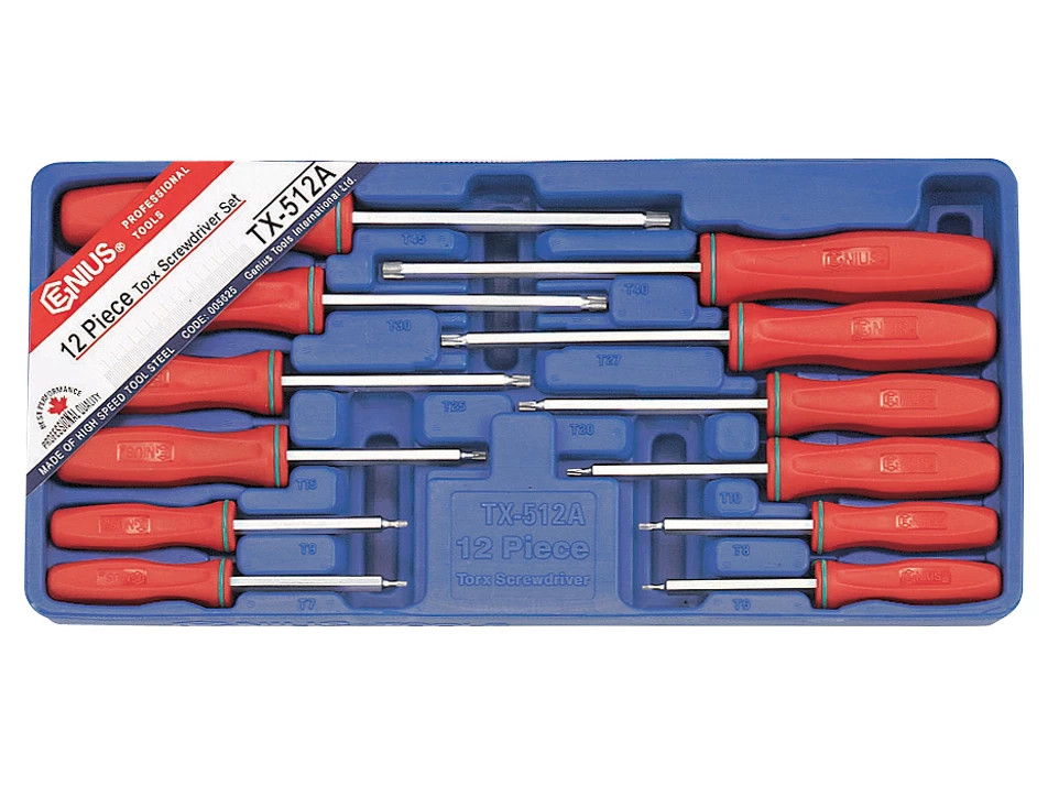 TX-512A | Tálcás Genius csavarhúzó készlet TORX - LYUKAS - 12 db-os - 1/3