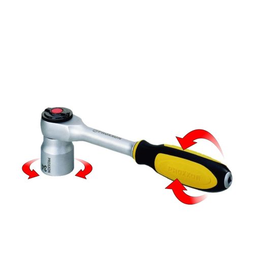 A nyél körkörös forgatásával is lehetőségünk nyílik a racsnis fej hajtására, ezáltal extra szűk helyeken
