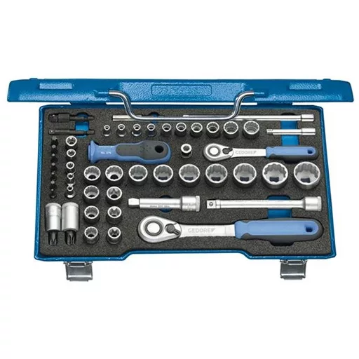 Kivitel: GEDORE 31CrV3 vanádium acélból készült szerszámok, kovácsolt, köszörült és krómozott. Szállítás GEDORIT kék acéllemez kazettában hajlított, varrat nélkül húzott peremmel és Check-Tool betéttel.