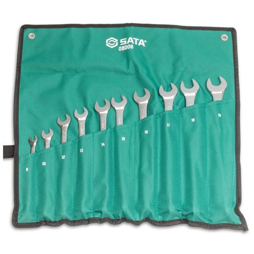 SATA extra hosszú csillag-villáskulcs készlet 8-19mm 10 részes (csavart nyéllel) (felgöngyölíthető táskában)