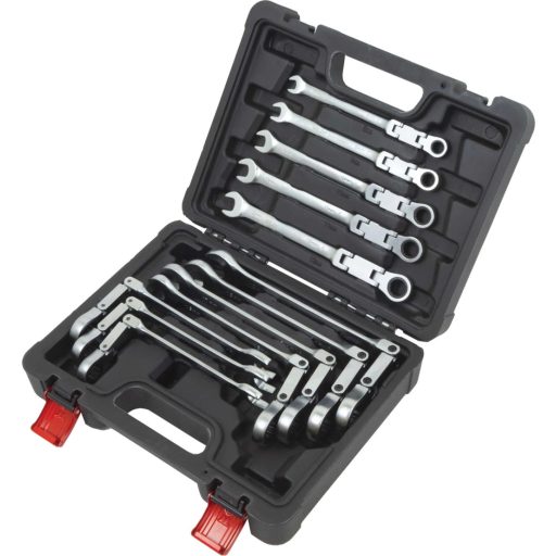 A 180°-ban fokozatmentesen elfordítható fej lehetővé teszi, hogy a kulcs bármilyen pozícióban beállítható legyen, így a szűk, mélyen fekvő vagy akadályokkal teli munkaterületeken is kényelmesen használható. Ez különösen hasznos a motor- és karosszériajavítás során, illetve olyan helyeken, ahol a hagyományos kulcsok már nem férnek el.