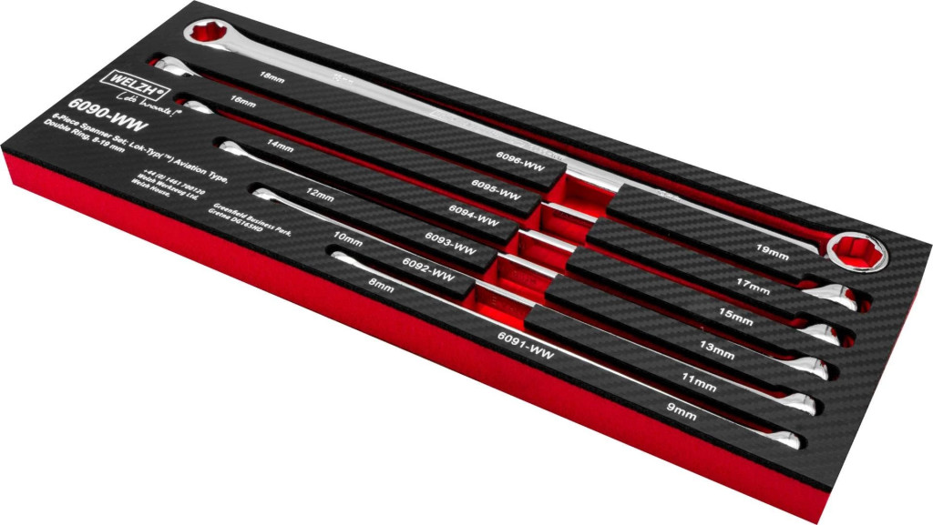 A 6 darabos repülős villáskulcskészletet olyan szakemberek számára tervezték, akiknek megbízható hozzáférésre van szükségük a nehezen elérhető rögzítőelemekhez.