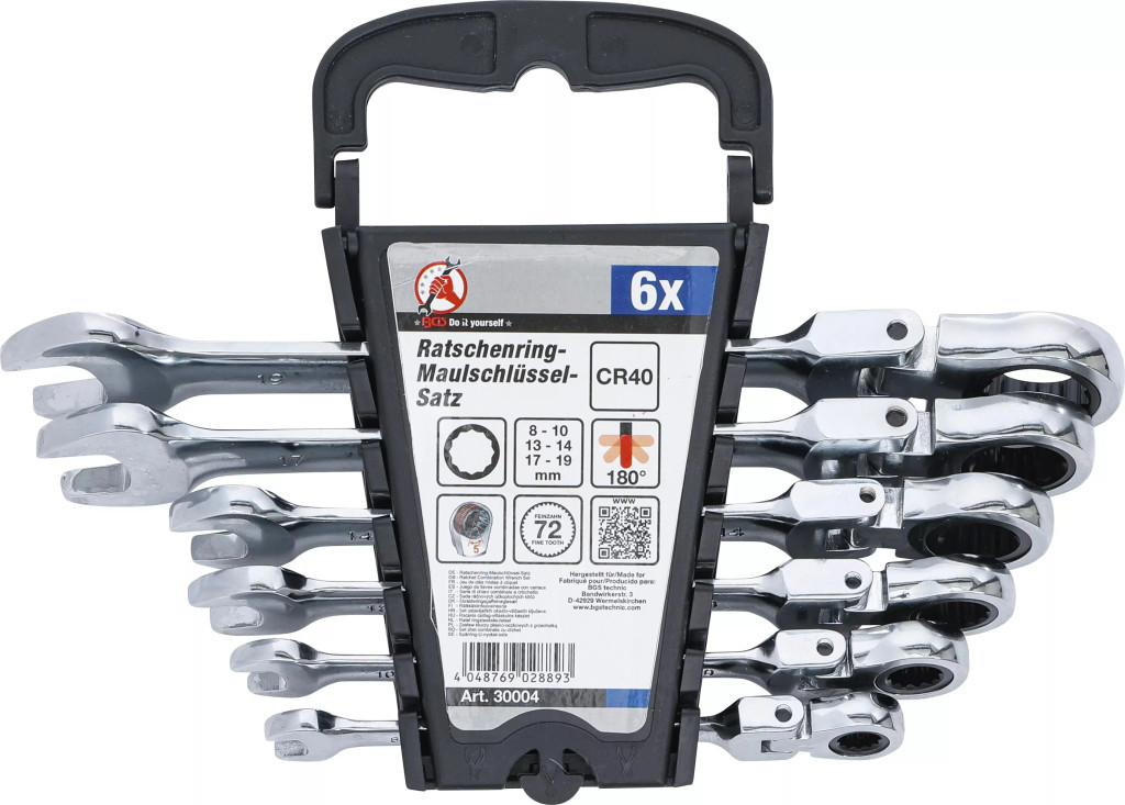 9-30004 | Csillag-villás racsnis-csuklós készlet 6 db-os 8-19 mm -BGS