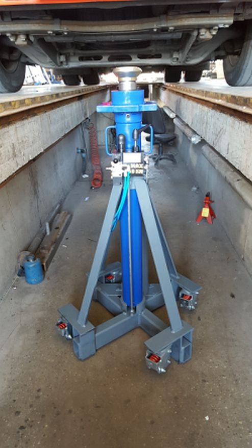 Akna alján guruló hidro-pneumatikus emelő 10 tonna terhelhetőséggel. Kiválóan alkalmas különféle emelési feladatok elvégzésére.