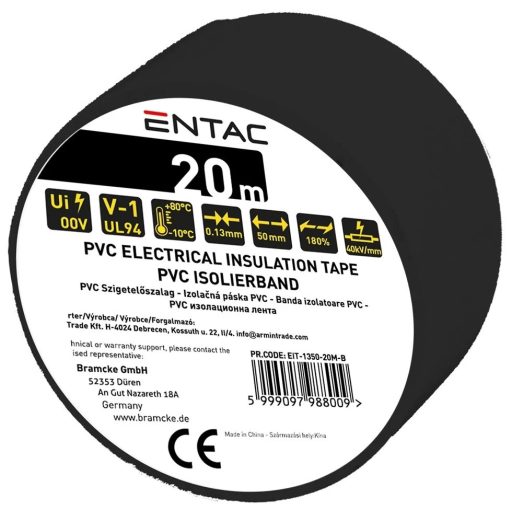 EIT-1350-20M-B | Szigetelőszalag 20m fekete 0.13x50 mm - Entac