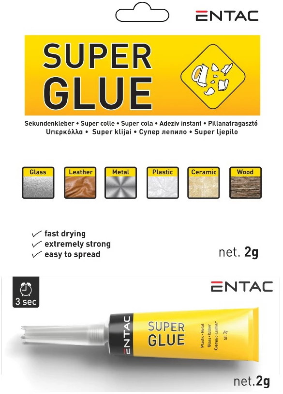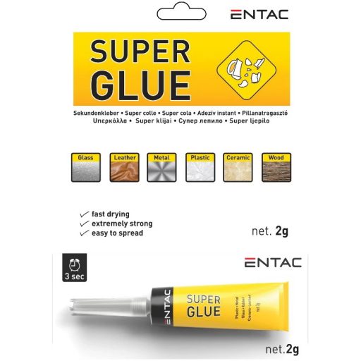 Az Entac Superglue pillanatragasztói elengedhetetlenek a háztartásokba, a különböző tárgyak gyors és egyszerű ragasztásához.