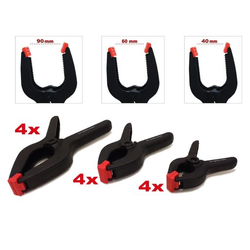 Gyorsszorító, kézi készlet 4x90 mm 4x60 mm 4x40 mm 12 db-os