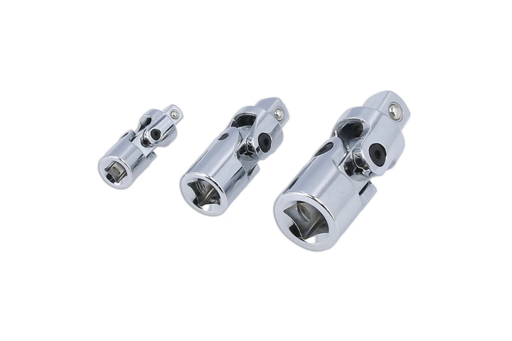 Ez a 3 részes rugóterhelésű univerzális csuklókészlet, amely 1/4", 3/8" és 1/2" hajtócsuklókból áll, úgy lett kialakítva, hogy könnyebben rögzíthetők legyenek a foglalatokba, és akár rögzítőelemeket is biztosítsanak.