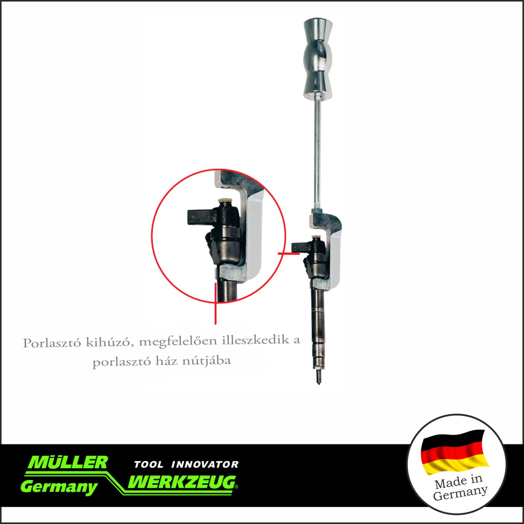 Kiválló minőségű, a Német Müller cég által gyártott szinte prémium minőségű rángatós porlasztó csúcs, injektor kiszedő szerszám