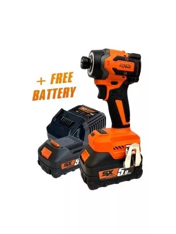Harmadik generációs 18 V-os Lithium-Ion SX Drive akkumulátoros 205 Nm-es 1/4" Bitbehajtós ütvecsavarozó gép 2 db 5.0 Ah akkuval és gyorstöltővel.