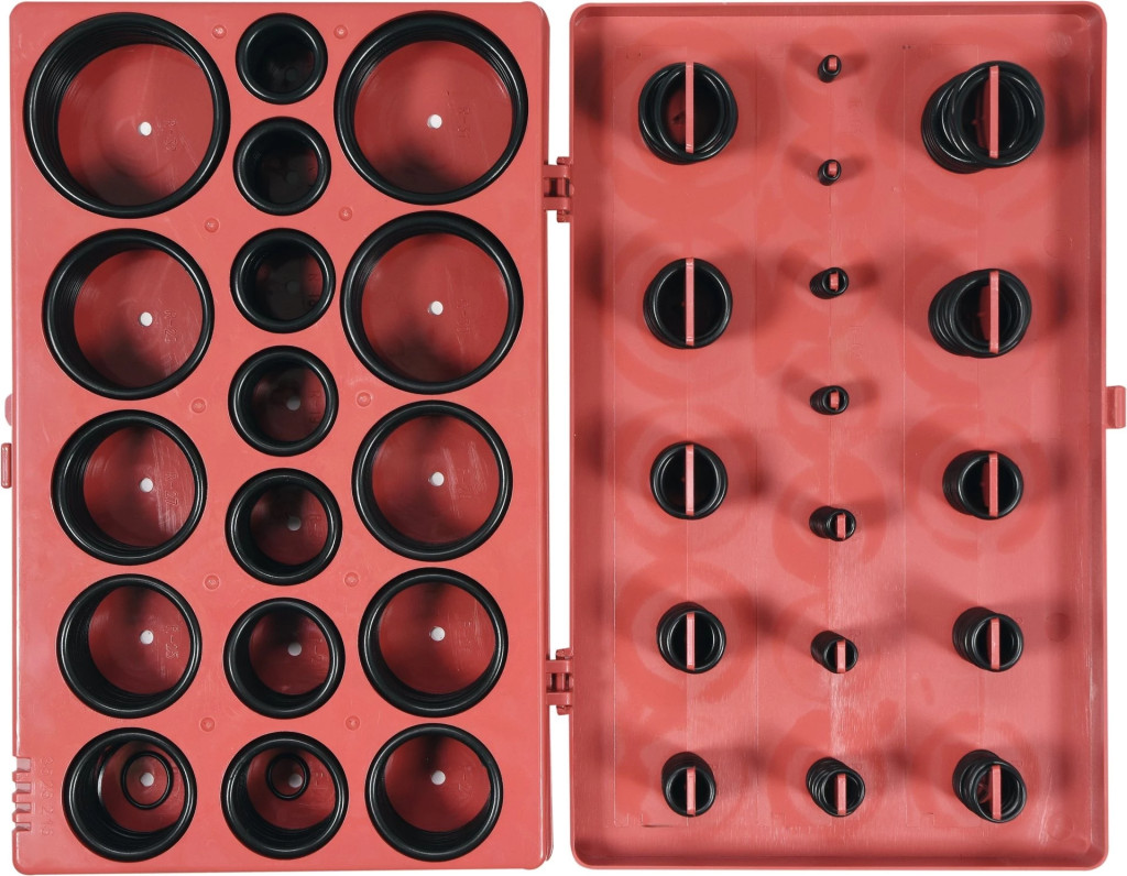 419 darabos O-gyűrű készlet NBR gumiból. A készlet 3x1,5 mm-től 50x3,5 mm-ig terjedő méreteket tartalmaz. Az egész egy praktikus "válogatós" Csomagolásban található.