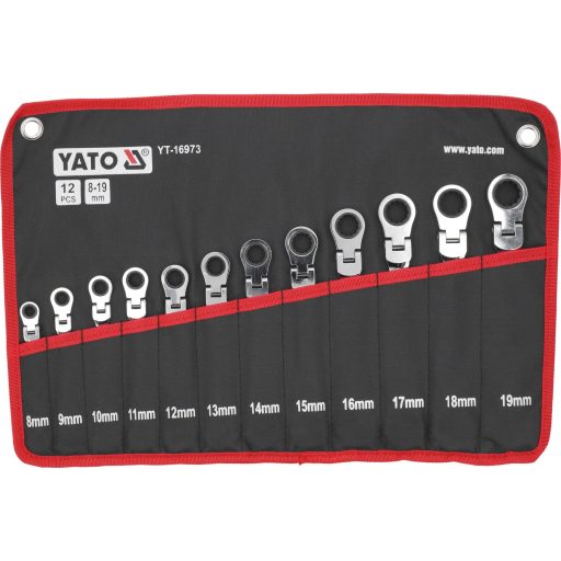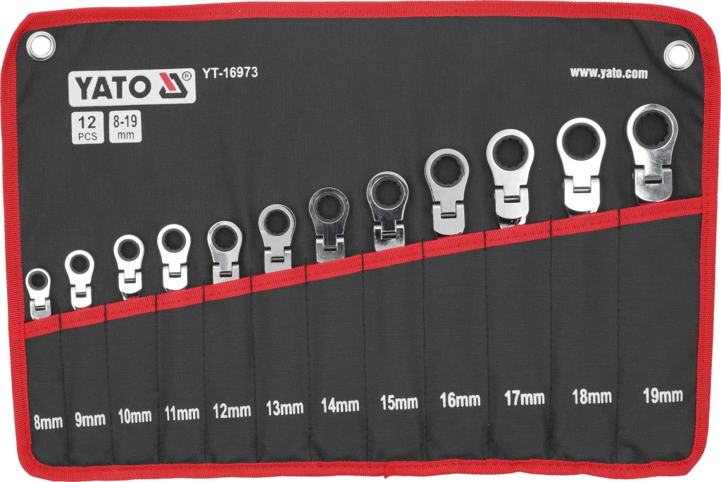 YT-16973 | Csillag-villás racsnis-csuklós készlet 8-19 mm 12 részes 72 fogas - Yato