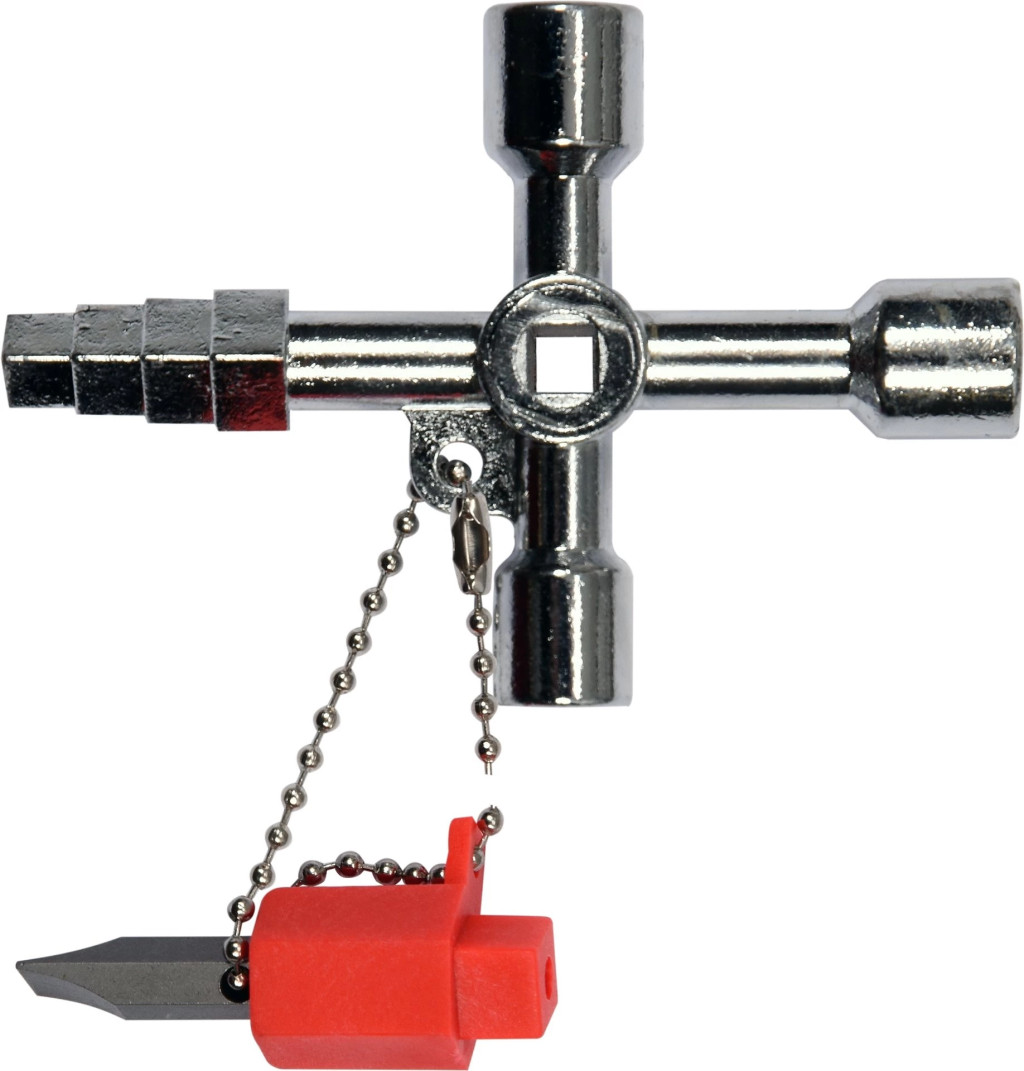 Kapcsolószekrény (karbantartó) kulcs - négyágú + 2 adapter